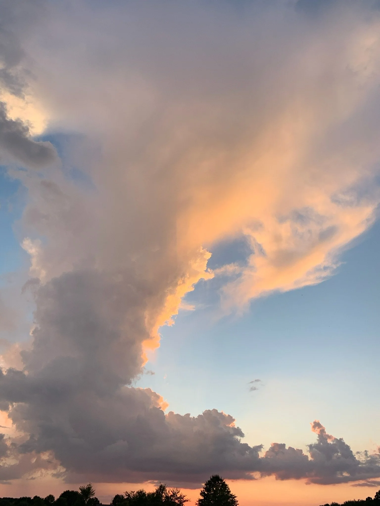 Our backyard faces west and we are witness to amazing weather patterns and spectacular sunsets. No two days are alike. During the summer of 2021, I created a series of paintings inspired by the idea of pareidolia, after seeing a chicken in the clouds. Most often animal and human forms are subtlety apparent, leaving it up to the viewer for interpretation.