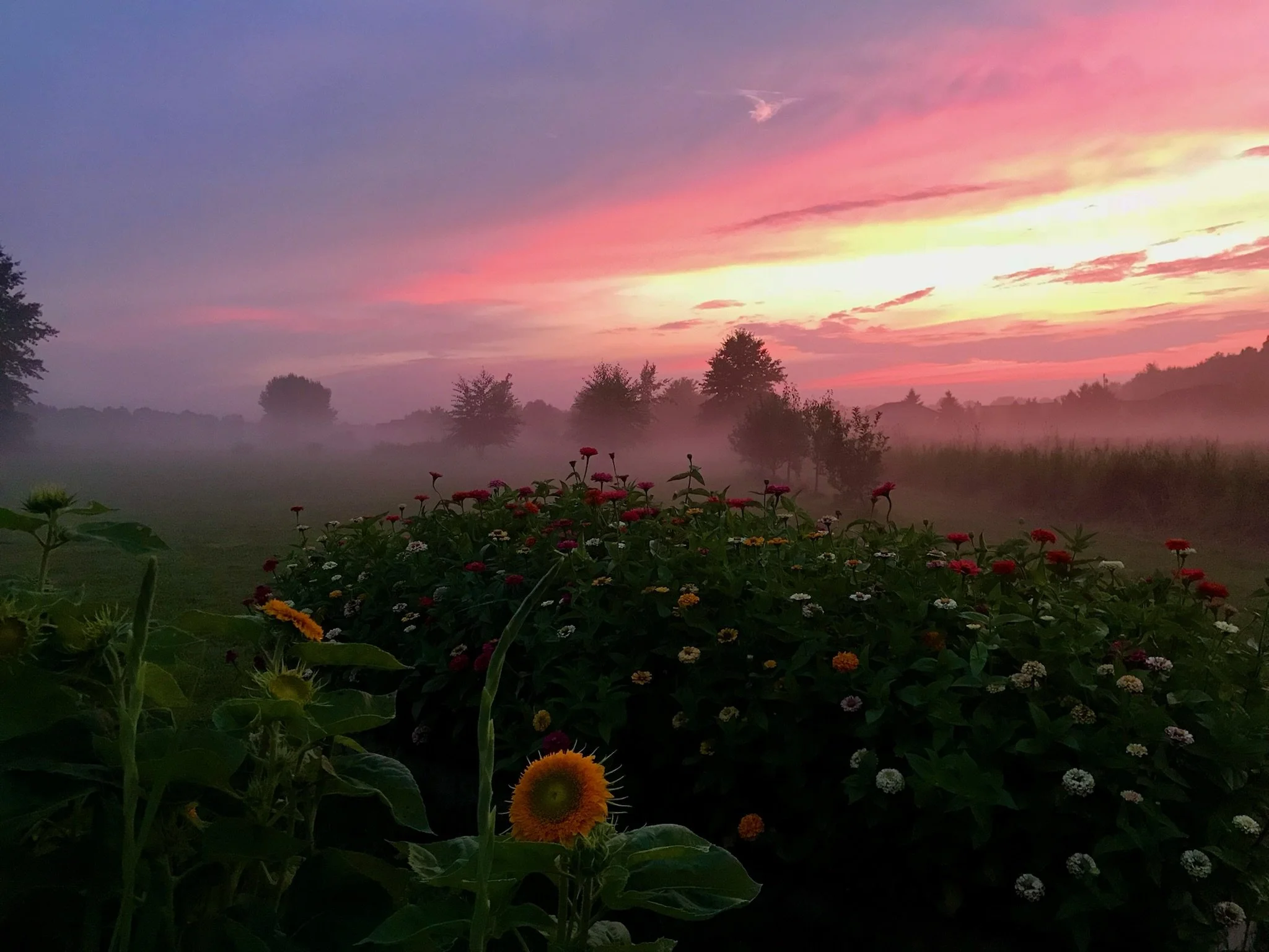 Flowers often find their way into my paintings. I fell in love with growing flowers in my early twenties, planting a variety of annuals and perennials suited for cutting and as companions to the vegetables. Today, more than half of the garden is dedicated to my flowers and it is a delight to enjoy them year after year from spring to fall. I love to make bouquets and share them with others. My favorite varieties include zinnias, dahlias, cosmos, sunflowers, sweet peas, butterfly weed, bachelor buttons and peonies.